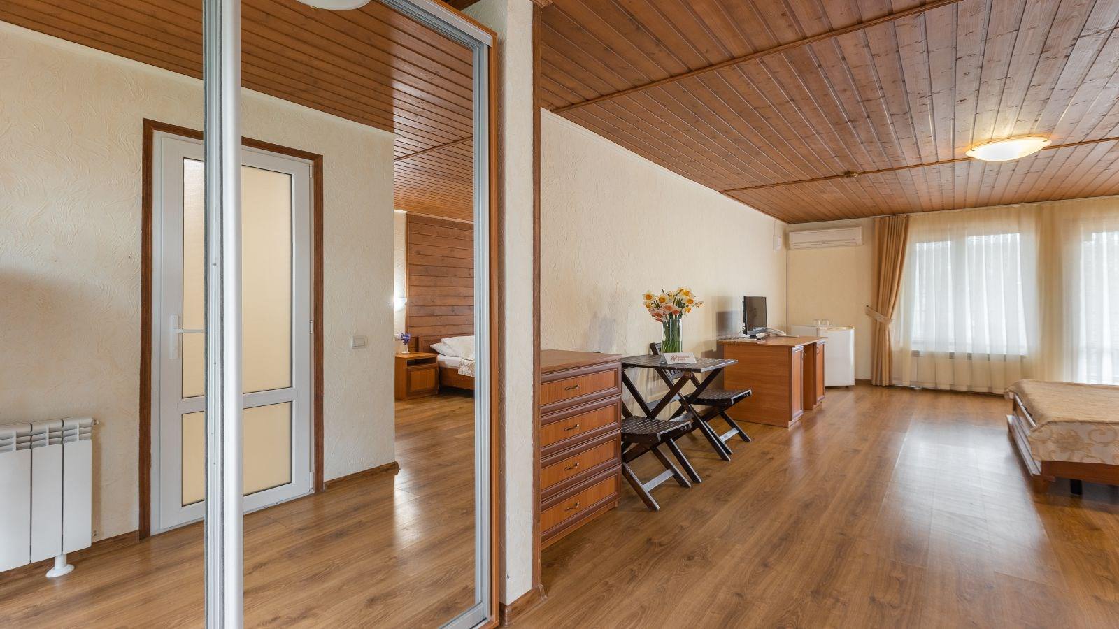 Вместимость до 4 мест: 2 основных и 2 дополнительных места. Дети — можно без отдельного спального места Идеально подходят для отдыха вдвоем или с маленьким ребенком. Из номера открывается вид на внутренний дворик и сад. В номере стоят две односпальные кровати, комод, прикроватные тумбочками. Из номера можно выйти на отдельный балкон.